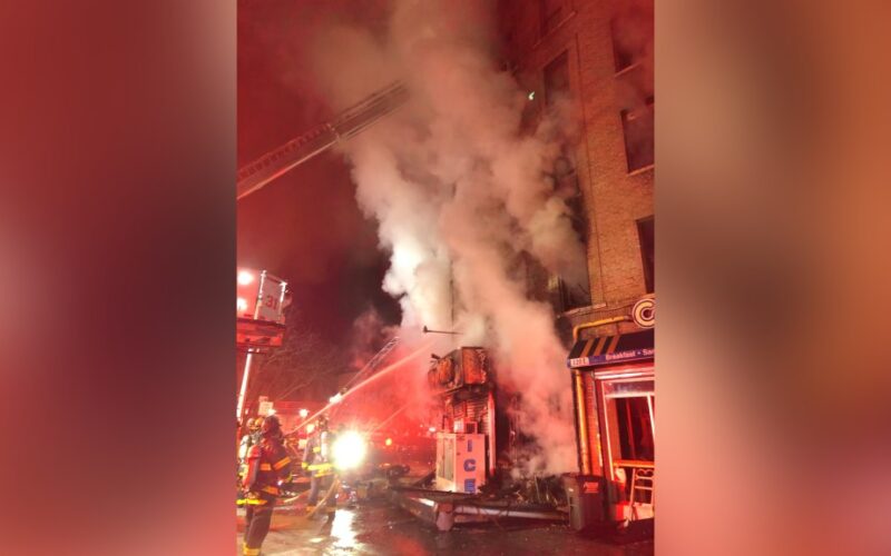 A massive five-alarm fire tore through a Bronx deli and the apartments above it early Monday, drawing Mayor Mamdani to the scene on his fifth day in office.