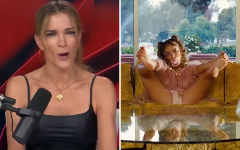 Kelly described the clip in graphic terms, saying Sweeney is shown “dressed as a baby… sucking on a binky pacifier” with her “legs … completely spread.”