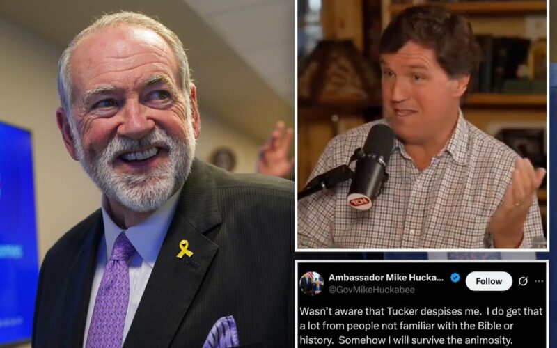 “Wasn’t aware that Tucker despises me. I do get that a lot from people not familiar with the Bible or history,” Huckabee, the former governor of Arkansas, responded on X. “Somehow, I will survive the animosity.”