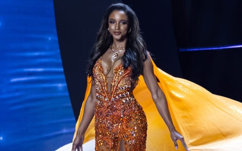 In November, the beauty queen was carried off on a stretcher after falling off the stage during the Miss Universe preliminary evening gown competition.