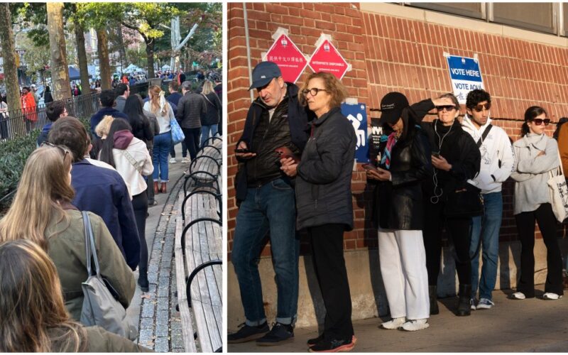 On the final day of early voting, voters wait on long lines outside the American Museum of Natural History in Manhattan on Sunday, November 2, 2025. (Andrew Julien / New York Daily News)