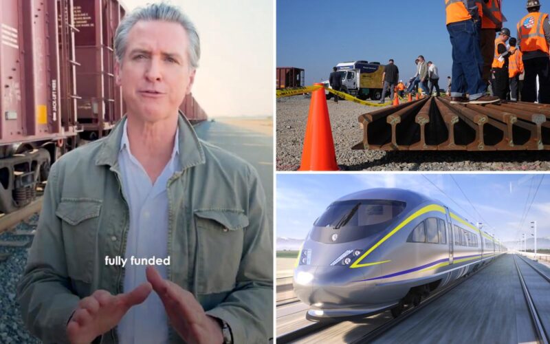 “We’re now in the process of starting to lay track,” Newsom bragged in a video posted to social media as he gestured towards a freight train in Wasco.
