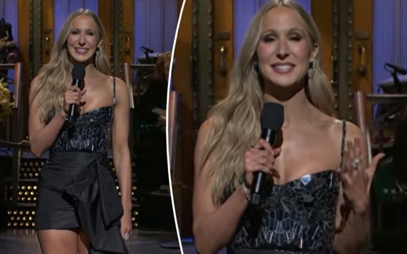 Glaser appeared in multiple sketches during her “SNL” hosting debut. She played Princess Belle in a “Beauty and Mr. Beast” sketch and an anxious guest in a “The Jennifer Hudson Show” sketch.