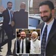 New York City Comptroller Brad Lander (C) joins demonstrators participating in a “No Kings” protest in Manhattan on Oct. 18, 2025, in New York City.