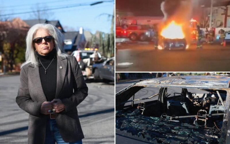 A car meet-up turned violent on Sunday and resulted in a car set ablaze. X / @VickieforNYC