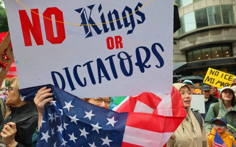 “‘No Kings’ is more than just a slogan. It is the foundation our nation was built upon,” organizers added. “Born in the streets, shouted by millions, carried on posters and chants, it echoes from city blocks to rural town squares, uniting people across this country to fight dictatorship together.”
