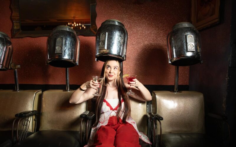 Inside the E. 14th St. nightspot-with-a-twist and under a flickering neon sign, women perch on retro salon chairs under vintage hair dryers — clutching Cosmos instead of clutches.
