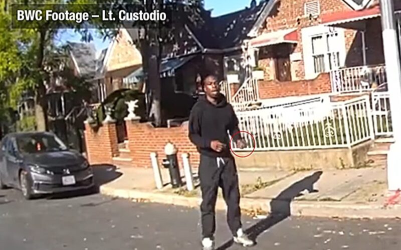 As the video shows, as Bacchus stands in the middle of the street facing the cops, Custodio yells at him to “drop it” 10 times. Several other officers also all simultaneously shout at him, “Drop the gun!,” “Drop the f—ing gun!” and “Don’t be stupid! Drop the gun!”