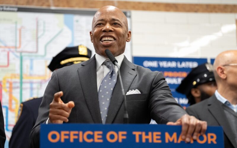 The program works with Gov. Hochul’s subway safety plan, which has so far brought 8,600 homeless people in the subway to shelters, and found permanent housing for 1,000 people, Adams said.