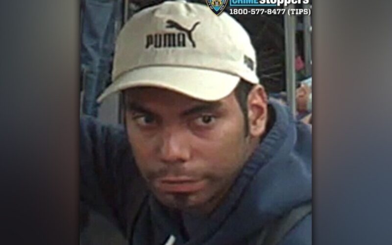 New surveillance images of the suspect released Thursday show the suspect riding in the New York City subway wearing a white Puma baseball cap, a black sweatshirt and dark-colored pants.