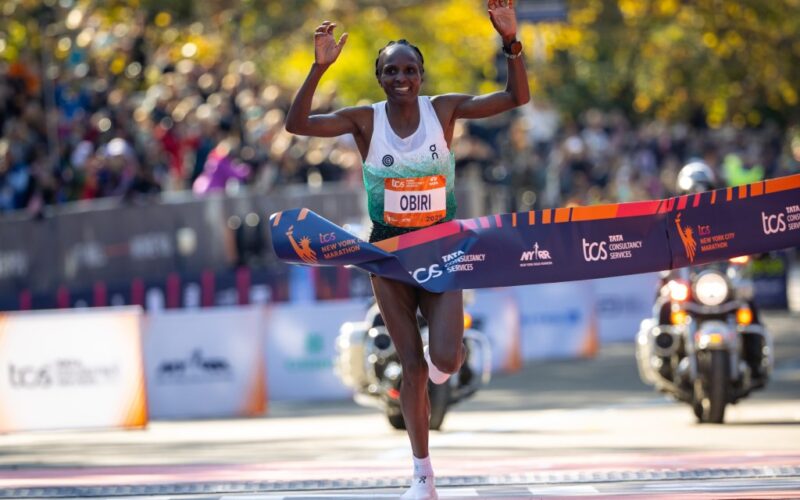 Hellen Obiri of Kenya set a women’s course record to win the New York City Marathon on Sunday while compatriot Benson Kipruto won the men’s race by edging Alexander Mutiso in a photo finish.