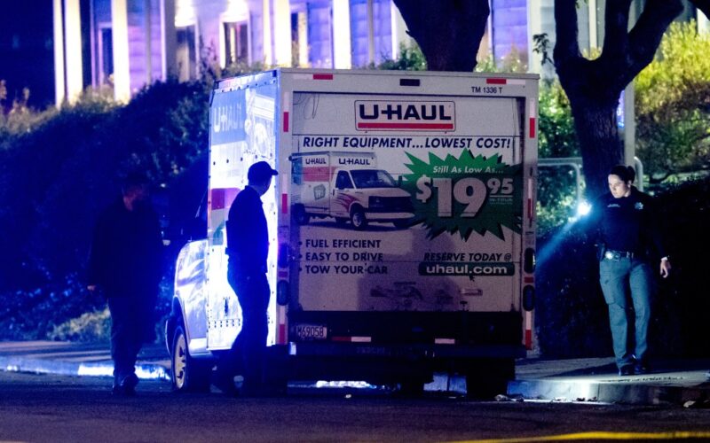 Video of the tense moments shows a U-Haul truck attempting to back into the base.