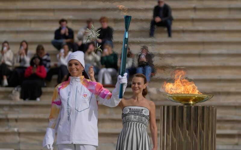 ATHENS, Greece (AP) — The Olympic flame for the Milan Cortina Winter Games was formally handed to Italian organizers on Thursday in the all-marble stadium in central Athens where the first modern Olympics were held nearly 130 years ago.
