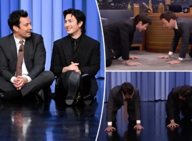 ‘Heated Rivalry’ star Hudson Williams teaches Jimmy Fallon hockey stretches