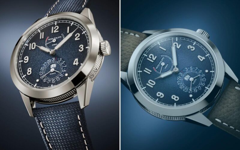 Its blue dial features a subtle texture inspired by a vintage camera case, the color gradually deepening to black at the rim. Patek aficionados will recognize this texture, which was first used in the reference 5226G-001 Calatrava, introduced in 2022.