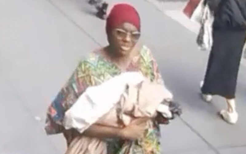 She was caught on surveillance video bringing the infant, wrapped in a blanket, into the 34th St.-Penn Station subway stop about 9 a.m. Monday.