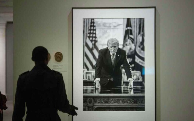 References to President Trump’s two impeachments have disappeared from the text describing his first term underneath his portrait in the National Portrait Gallery at the Smithsonian.