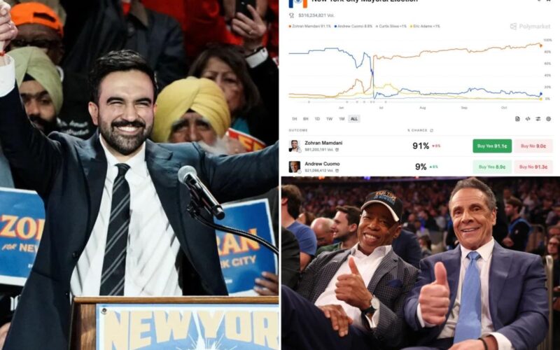 Notably, these accounts continue to place bets on a Mamdani win even though there is almost no financial upside: The odds on Tuesday afternoon placed Mamdani at 91% and Andrew Cuomo at 9%.