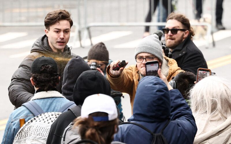 Protesters throw smoke bombs, clash over Jake Lang pig roast at heated ‘Islamification’ rally at Gracie Mansion