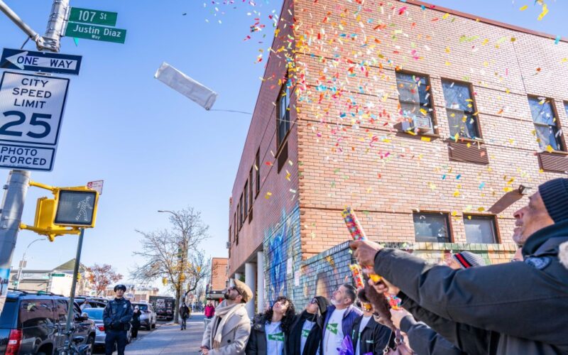 Councilman Francisco Moya and the family of Justin Diaz, who was 23 when he died, co-named 107th St. and Northern Blvd. in East Elmhurst Justin Diaz Way in an 11 a.m. ceremony. The family hopes the street sign will bring awareness to the consequences of impaired and reckless driving.