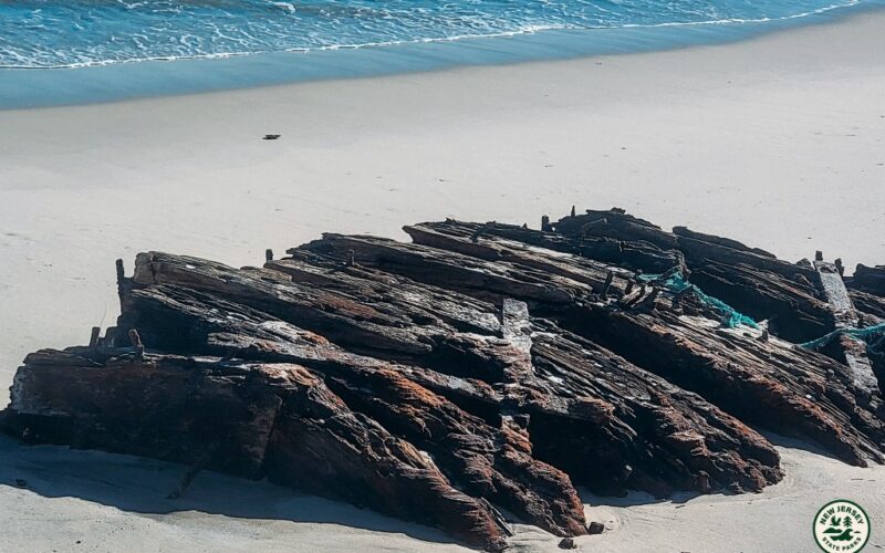 The remnants of a 19th-century shipwreck have been unearthed on the beach at a New Jersey state park.