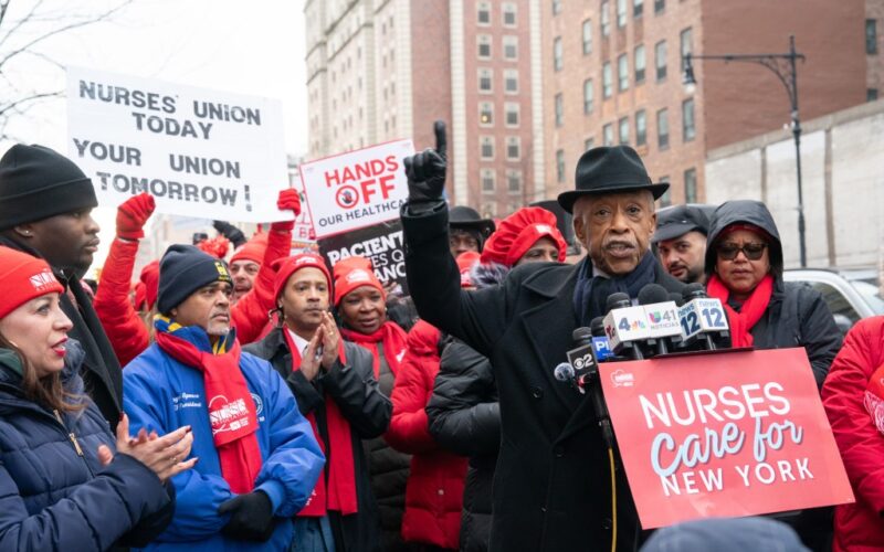 “How can you spend King Day and turn your back on people that are working and not insured right, and not given the right wages, and not given the right respect, when they’re taking care of our afflicted, our ill, our infirm,” said Sharpton. “In the name of Martin Luther King, I join the nurses in demanding justice.”