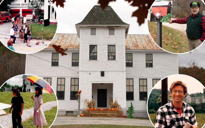 Decked out in “Beetlejuice”-themed Halloween decorations, Pierson’s home is located directly across from the schoolhouse, where he says he’s had a front-row seat to the filming of both movies.