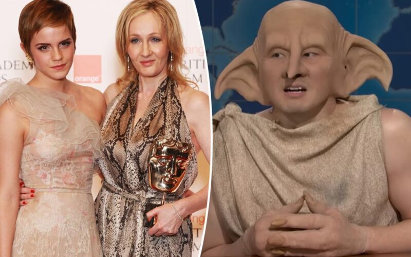 The Season 51 premiere hosted by Bad Bunny featured a “Weekend Update” segment where Bowen Yang played Dobby the House Elf to mock the “Harry Potter” author, 60, for her controversial views on the transgender community.