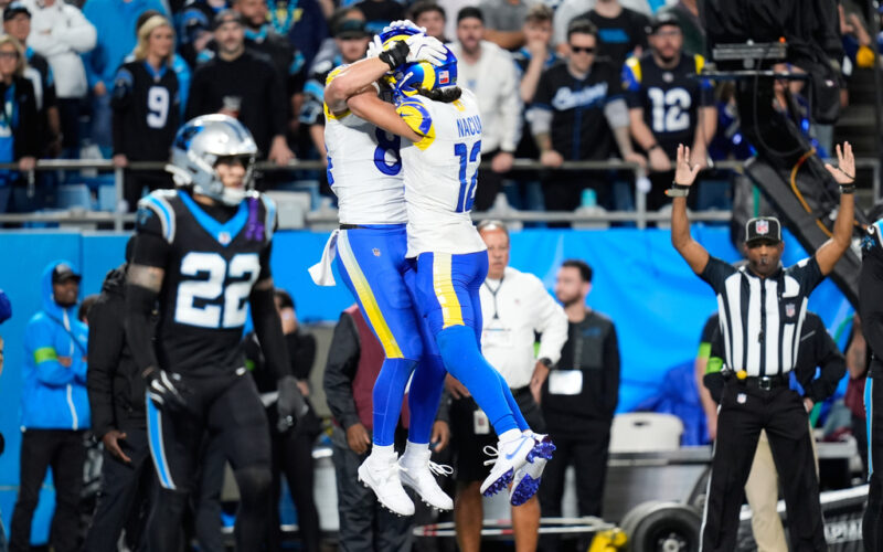 After the Rams defense came up with a stop on fourth down at midfield on Carolina’s opening drive, Stafford quickly moved the offense downfield and found Nacua for a 14-yard touchdown pass over the middle for a 7-0 lead.