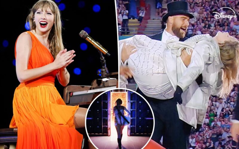 The trailer includes behind-the-scenes footage of Swift’s fiancé, Travis Kelce, from his appearance at the tour, including when he joined her on stage in London in June 2024.