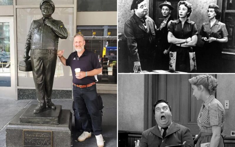 Gleason died in 1987, but he’s immortalized in character as Kramden in a statue at the Port Authority Bus Terminal in Manhattan. It even attracts fans and passersby today, like Rick Witkowsky, who stopped for a pic with the statue during a visit from Virginia with his wife, Deb.