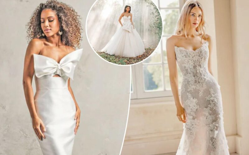 This season, some of the major trends are mermaid silhouettes, bubble hems, sheer or illusion gowns and bow accents, from teeny-tiny to supersize.