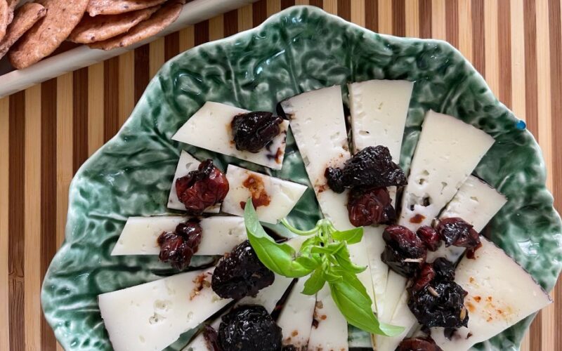 With Super Bowl Sunday approaching, I’m on the lookout for a nosh that is scrumptious and easy to prepare. White cheddar cheese topped with wine-soaked cherries andherbs is the perfect answer.