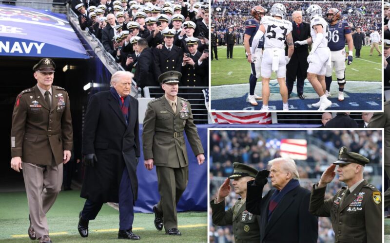 Trump was on the field for the coin toss, and got cheers from the crowd of cadets and midshipmen when his name was announced on the PA system.