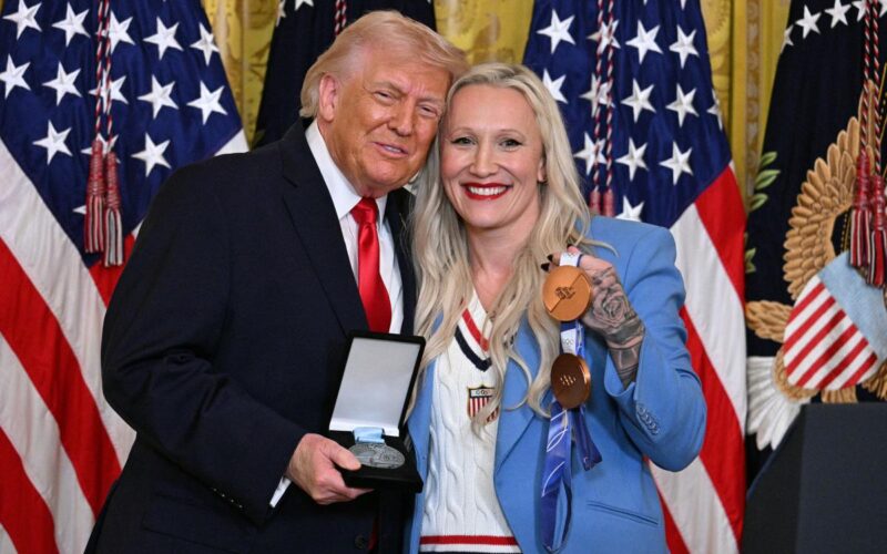 “I want to recognize the support and the impact you’ve had on women’s sports … specifically standing up to keep biological women in women’s sports, to keep the field of play safe and allow for fair competition,” the three-time Olympic gold medalist said.