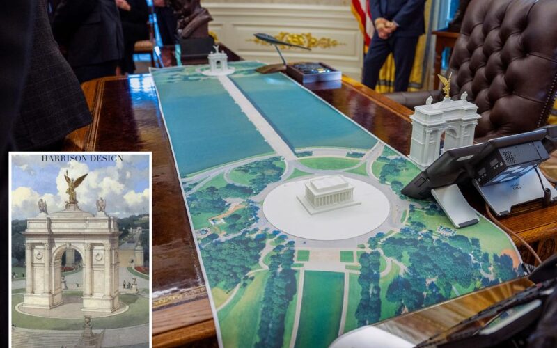 President Trump posted an architect’s rendering of a huge triumphal arch to mark the nation’s 250th birthday – and his biggest change yet to the capital’s skyline.