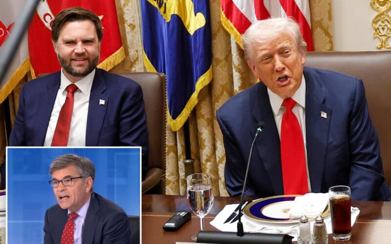 “We’ll take a couple of questions from the news, and I’m sure they’ll be incredibly non-hostile, and friendly, like JD went through a very ‘friendly’ interview with George Slopadopoulos,” Trump said with apparent sarcasm, making fun of Stephanopoulos’ name.