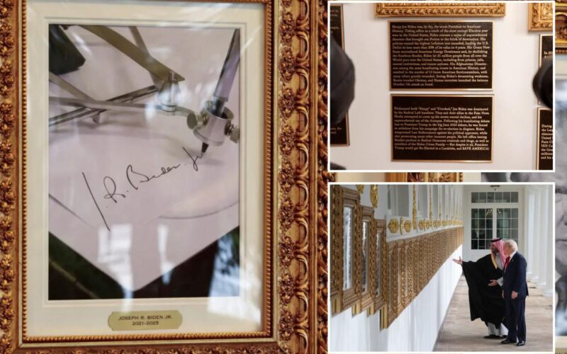 President Trump has added new plaques beneath each portrait of America’s 45 presidents on his “Presidential Walk of Fame” at the White House — including blistering attacks on Joe Biden, Barack Obama and George W. Bush.