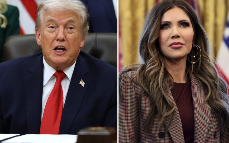 “The Radical Left Lunatics, Insurrectionists, Agitators, and Thugs, are going after Kristi Noem, the Secretary of Homeland Security, because she is a woman, and has done a really GREAT JOB!” Trump posted on Truth Social on Friday night.