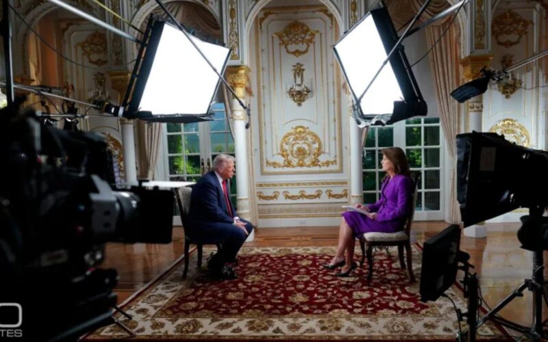 The interview, which airs Sunday on “60 Minutes,” was filmed Friday at Trump’s Mar-a-Lago estate in Florida, according to the news site Semafor — and comes just weeks after Bari Weiss took the helm of the network.