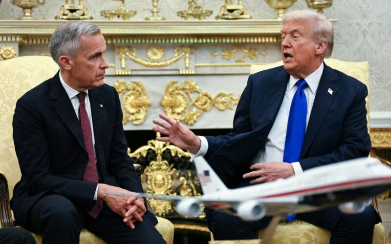 President Trump meets with Canadian Prime Minister Mark Carney in the Oval Office of the White House in Washington, DC on Oct. 7, 2025. AFP via Getty Images