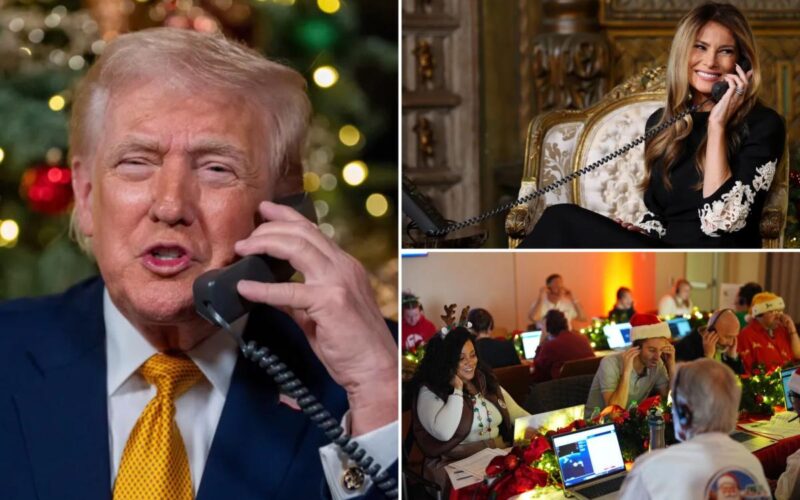 Trump spoke as first lady Melania Trump also took calls nearby in front of a Christmas tree at his Mar-a-Lago club in Florida.