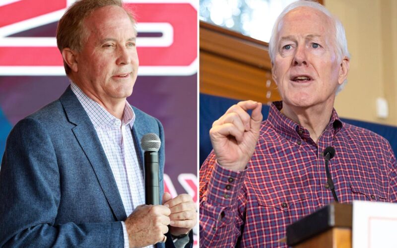 The two Senate GOP candidates have been trading barbs in digital ads, with Cornyn’s camp pushing out a video savaging the “crooked” Texas AG for having “cheated on his wife” and giving “millions of Texas tax dollars to left-wing organizations” that “performed gender-affirming services to kids as young as seven.”