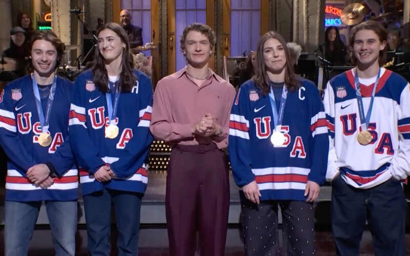 The gold medalists were part of a hockey theme, with Storrie hosting “SNL” for the first time after starring in the HBO Max series “Heated Rivalry” about two hockey players with an on-ice rivalry and off-ice secret relationship.