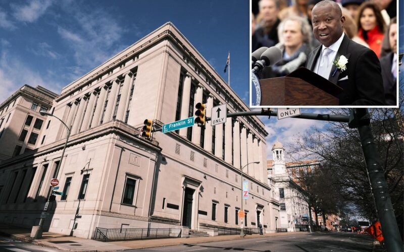 The Virginia State Supreme Court Building and E. Franklin Street in Richmond.
