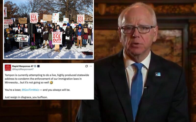 “Tampon is currently attempting to do a live, highly produced statewide address to condemn the enforcement of our immigration laws in Minnesota… but it’s not going so well,” read an X post from the White House’s Rapid Response account, which used the derisive nickname some Republicans use to refer to Walz.