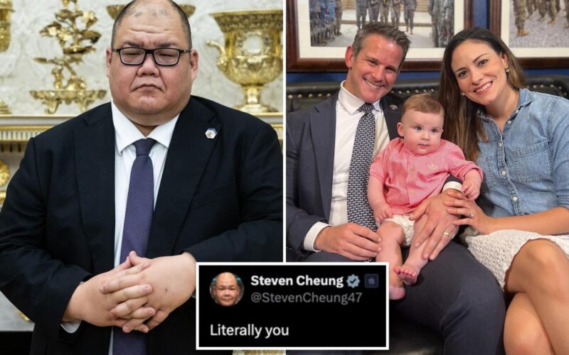 Kinzinger responded by seemingly mocking Cheung’s appearance, sharing a zoomed in image of the Trump aide’s face with the caption, “literally you.”
