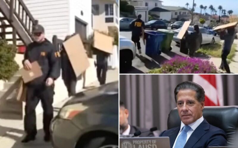 Videos showed federal agents exiting Carvalho’s San Pedro home with large brown boxes and loading them into FBI vehicles. Officers were also recorded entering his Los Angeles office.