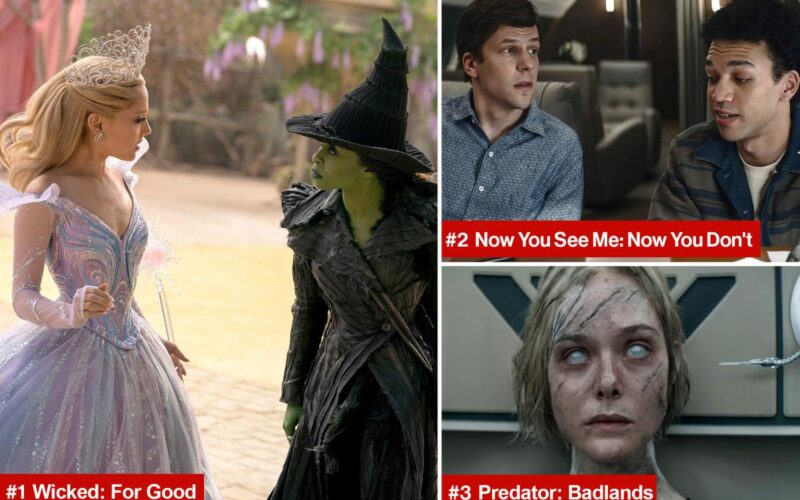 “Predator: Badlands,” remained in third, with a $1.7 million take on its third Friday in theaters, and is estimated to reel in $6.2 million in total this weekend.